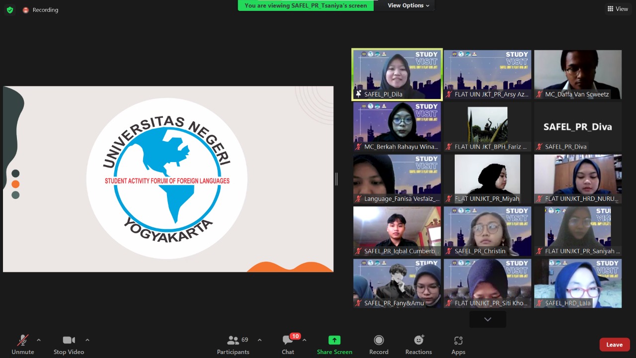 Community Visit is a program held by the Public Relation Department of UKM SAFEL UNY which facilitates other organizations or institutions to connect with SAFEL. The aims of the program are to welcome those organizations or institutions, to increase our relations, and to widen our knowledge about organizational things. This year, we held a Community Visit together with the UKM Bahasa FLAT UIN Jakarta. FLAT stands for Foreign Languages Association Training. Community Visit was held on July 1, 2022. FLAT is a new relationship that has been successfully established through the 2022 Community Visit.